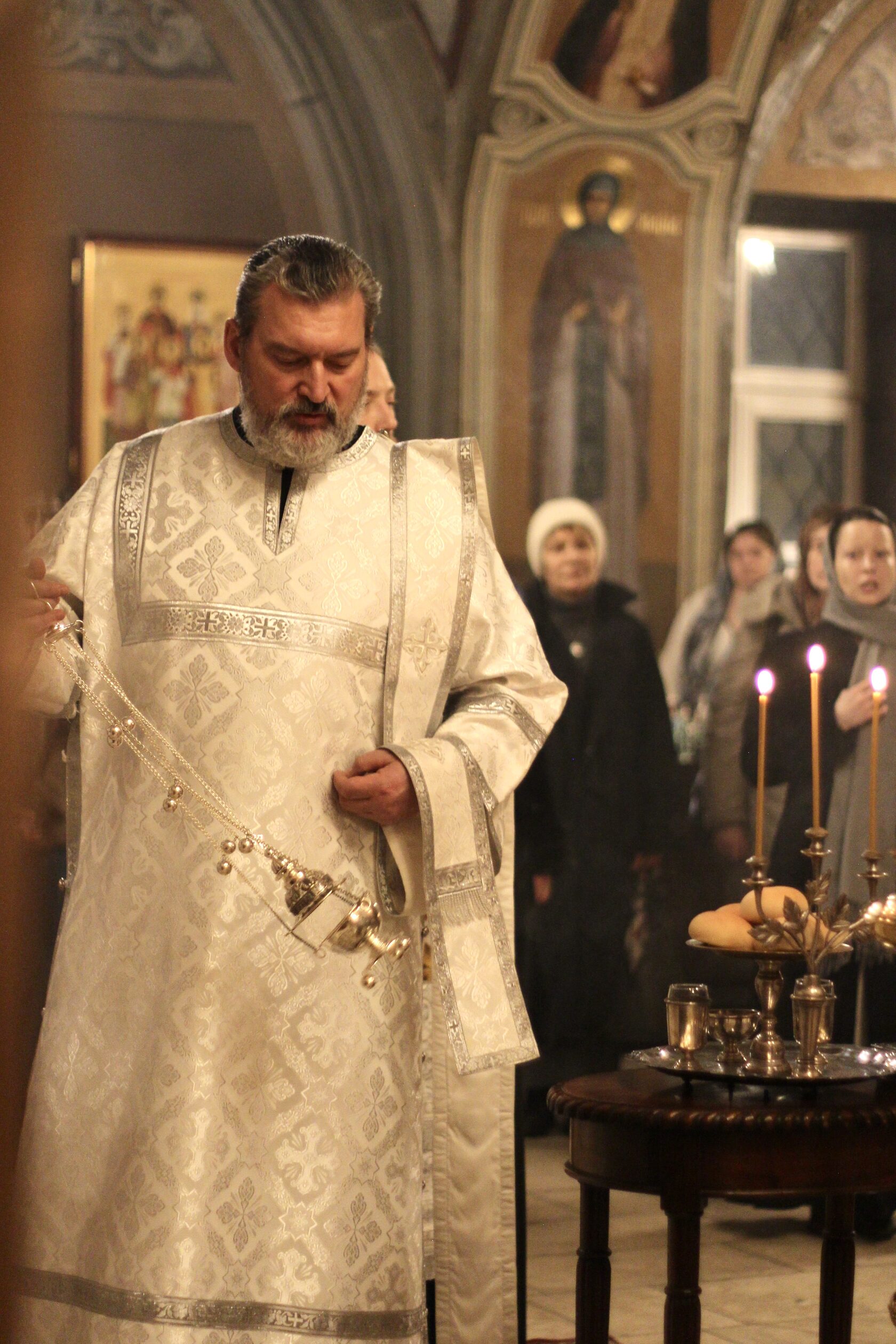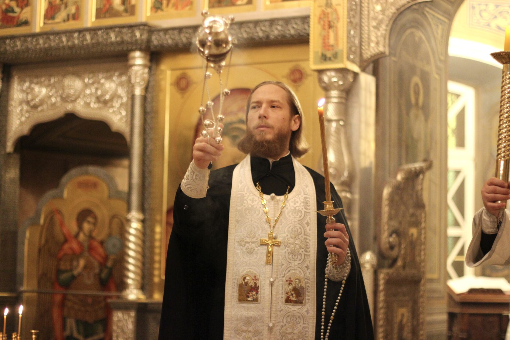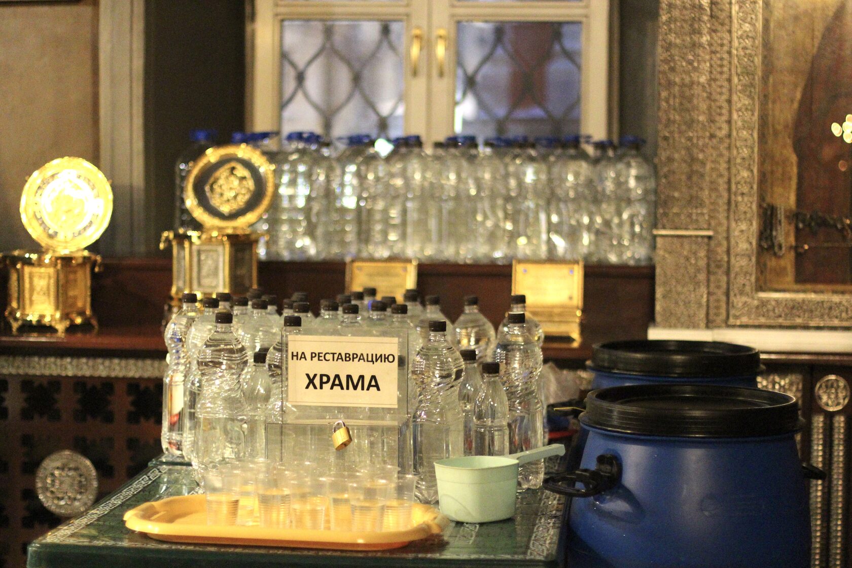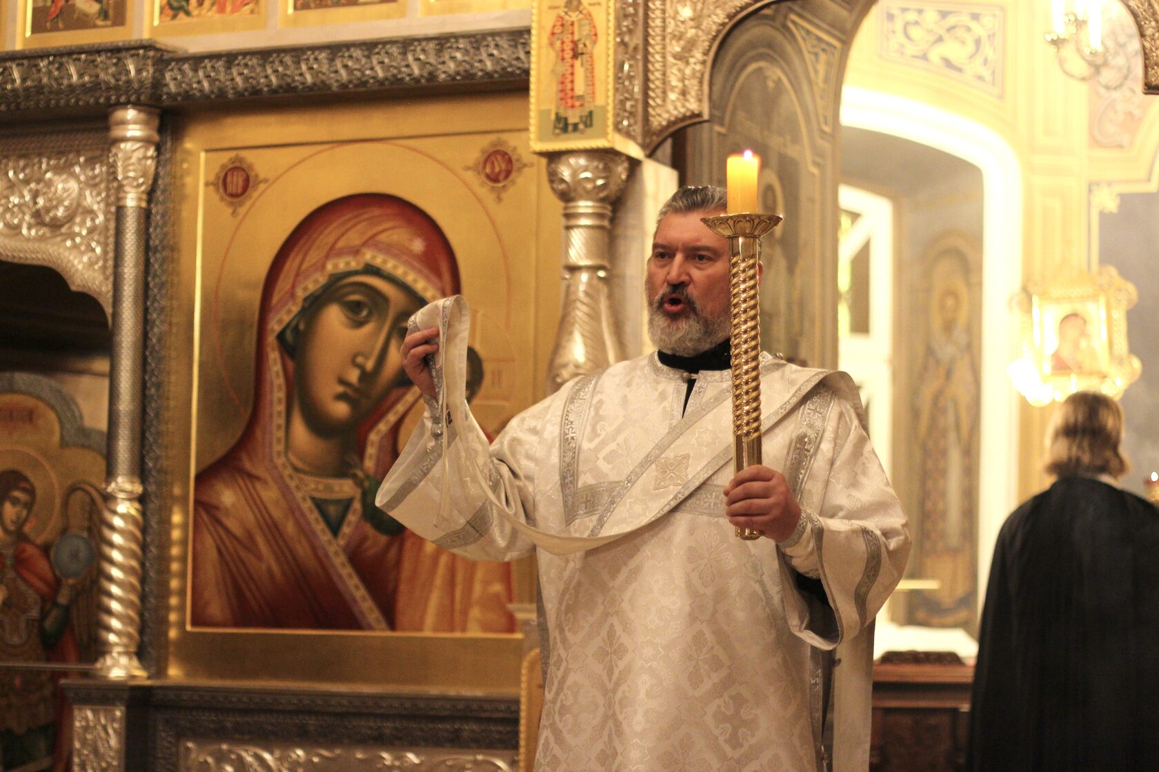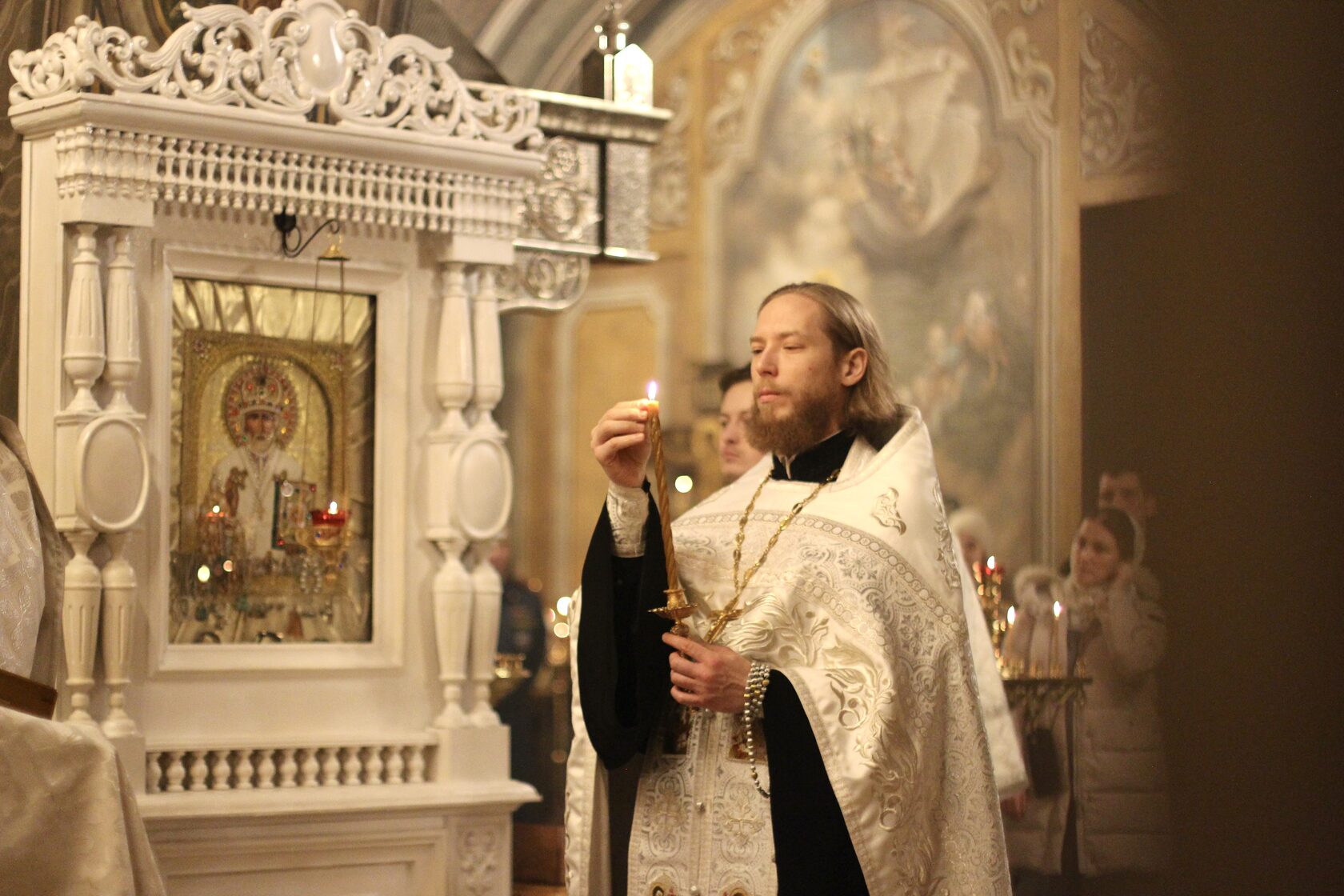 Перевод: Когда Ты, Господи, крестился во Иордане, люди узнали Святую Троицу, потому что голос Бога Отца называл Тебя любимым Сыном, а Дух Святой, в виде голубя, эти слова подтверждал. Ты, Господи, пришел на землю и дал людям свет, слава Тебе.