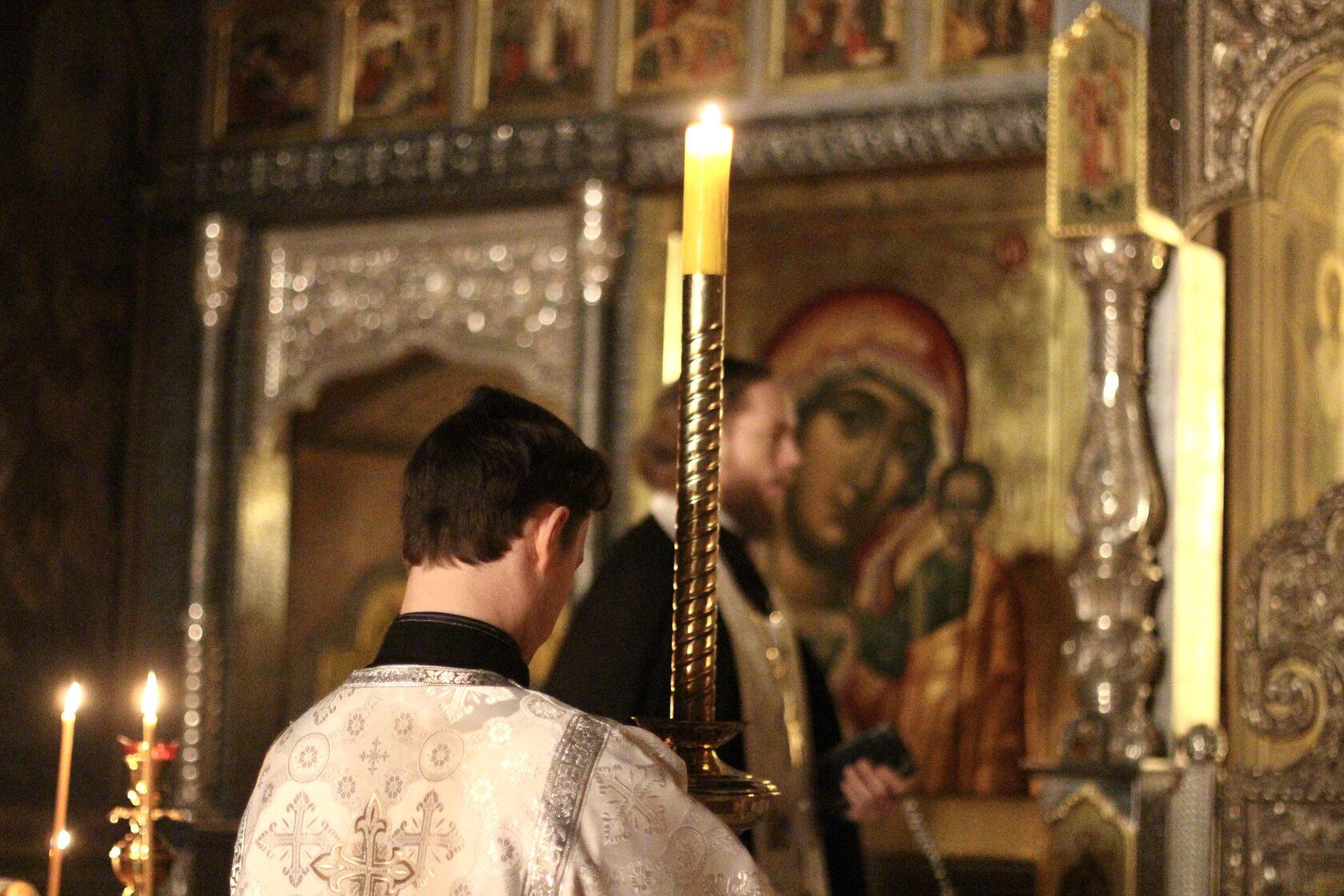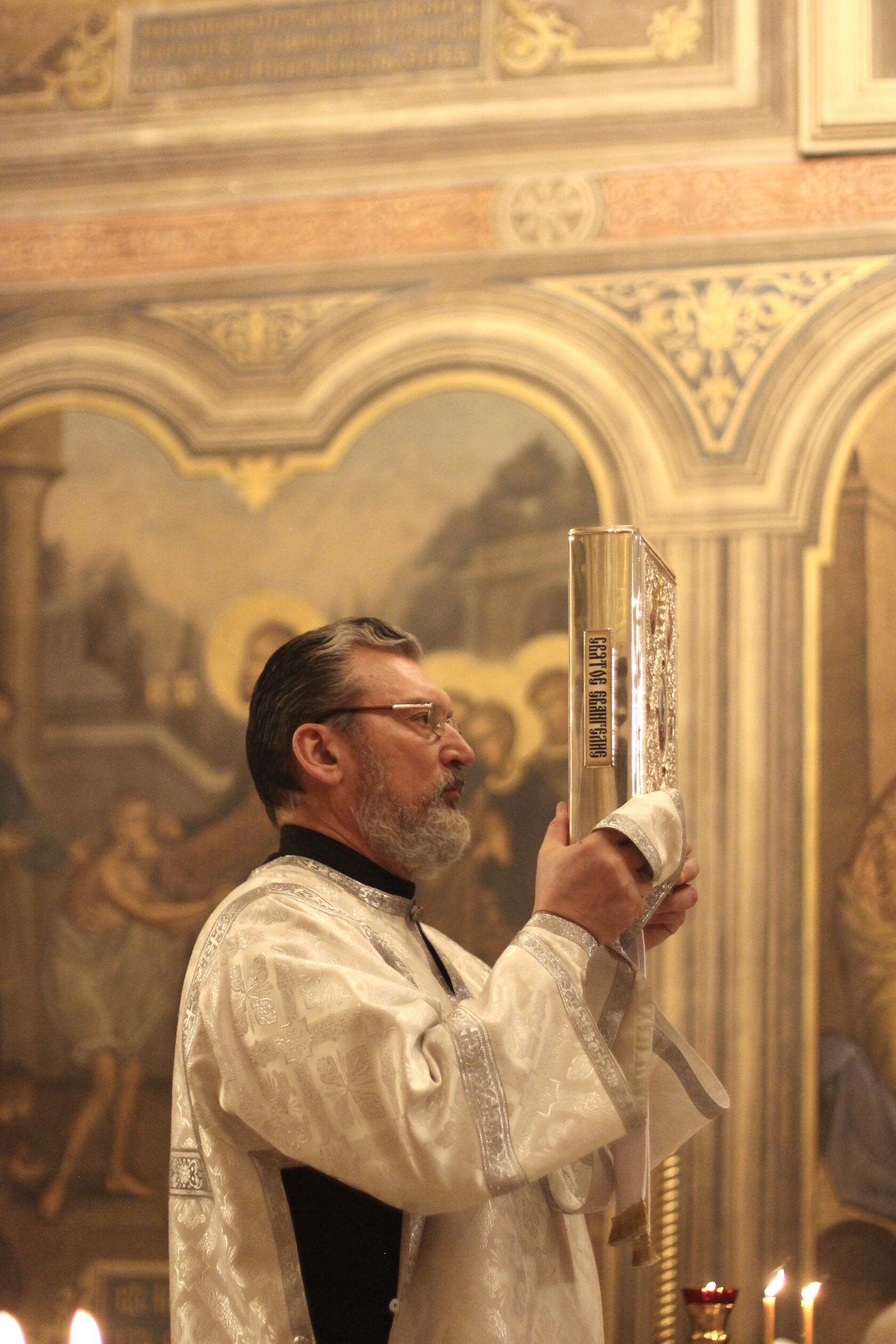 Перевод: Явился Ты в сей день вселенной, и свет Твой, Господи, запечатлелся на нас, в полноте знания воспевающих Тебя: «Пришел, явился Ты, Свет неприступный!»