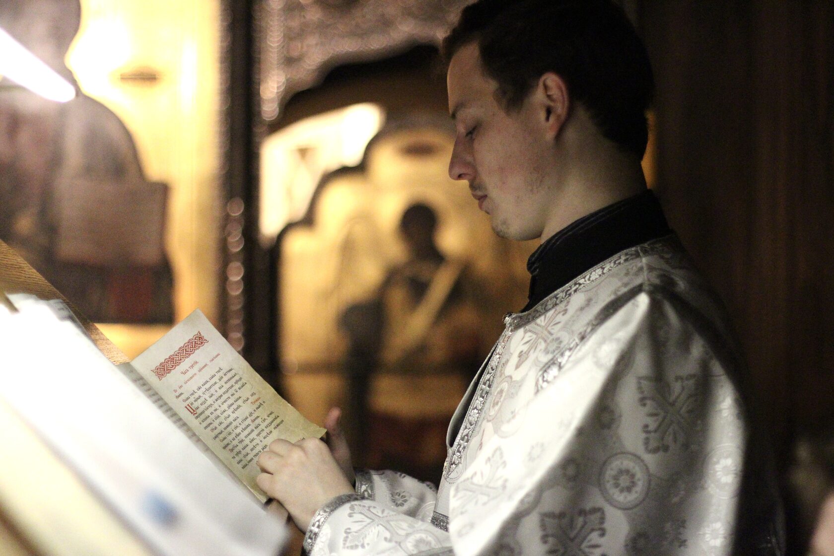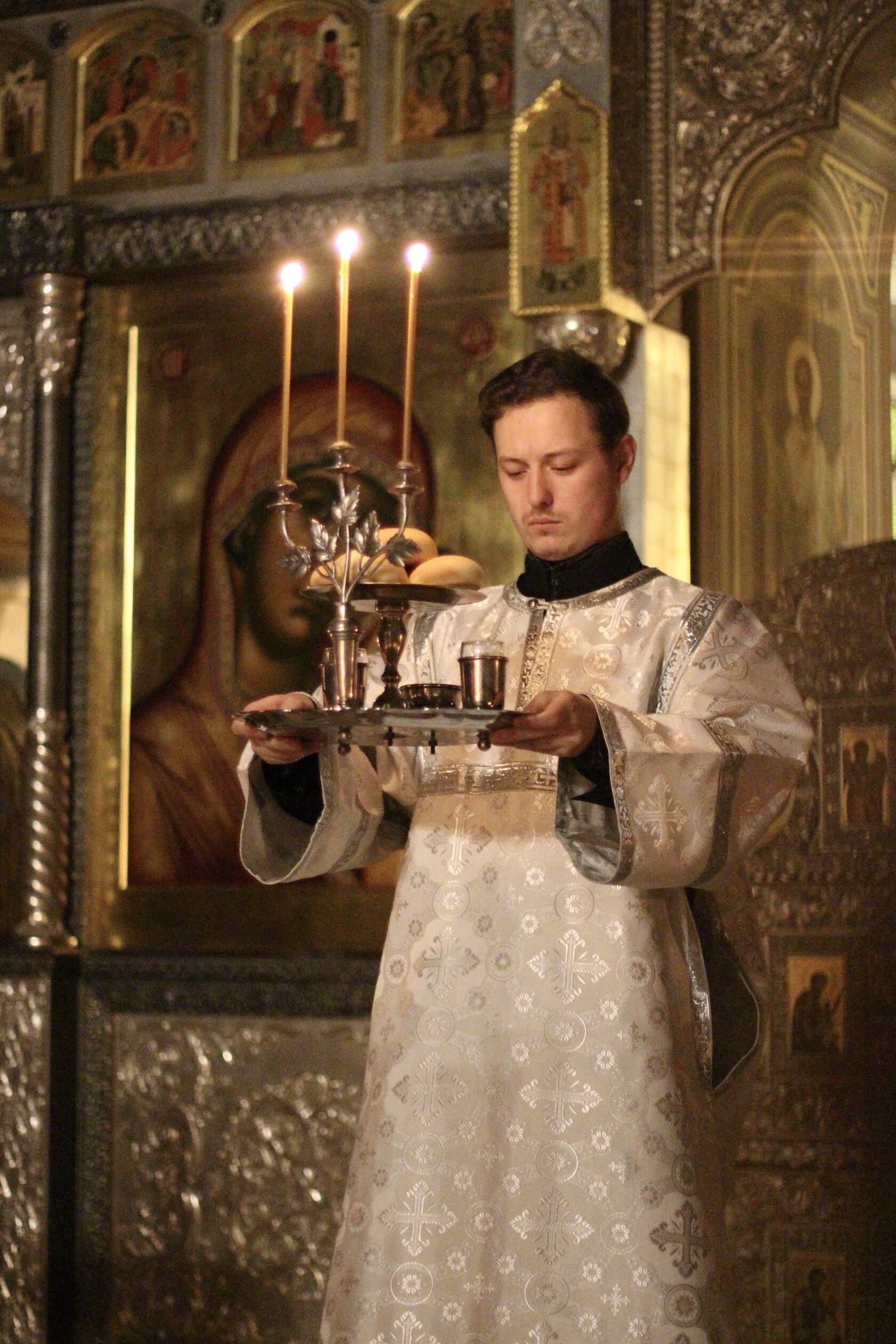 Яви́лся еси́ днесь вселе́нней,/ и свет Твой, Го́споди, зна́менася на нас,/ в ра́зуме пою́щих Тя:/ прише́л еси́, и яви́лся еси́,// свет непристу́пный.