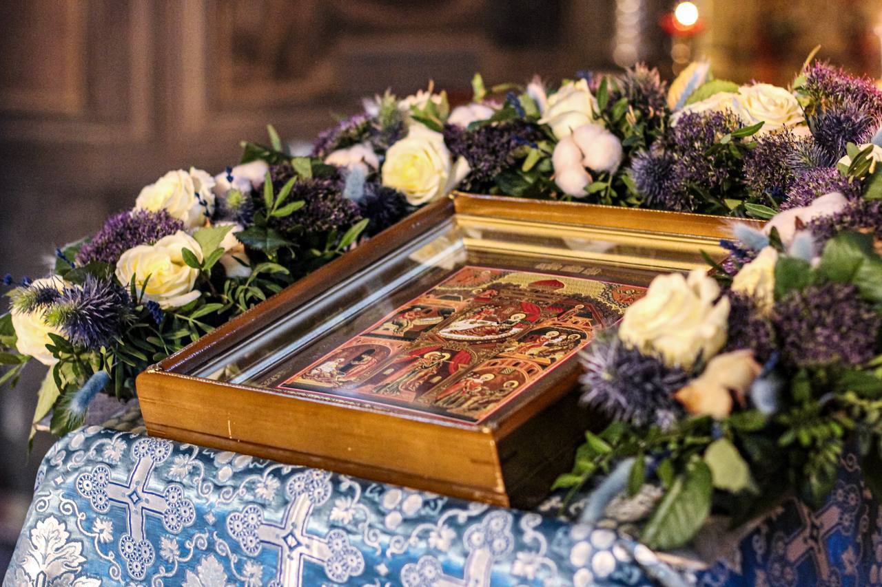 Перевод: Иоаким и Анна от поношения за бездетность и Адам и Ева от тления смертного освободились святым Твоим рождеством, Пречистая. Его празднуют и люди Твои, от осуждения за грехи избавленные, восклицая Тебе: «Неплодная рождает Богородицу и Питательницу Жизни нашей!»