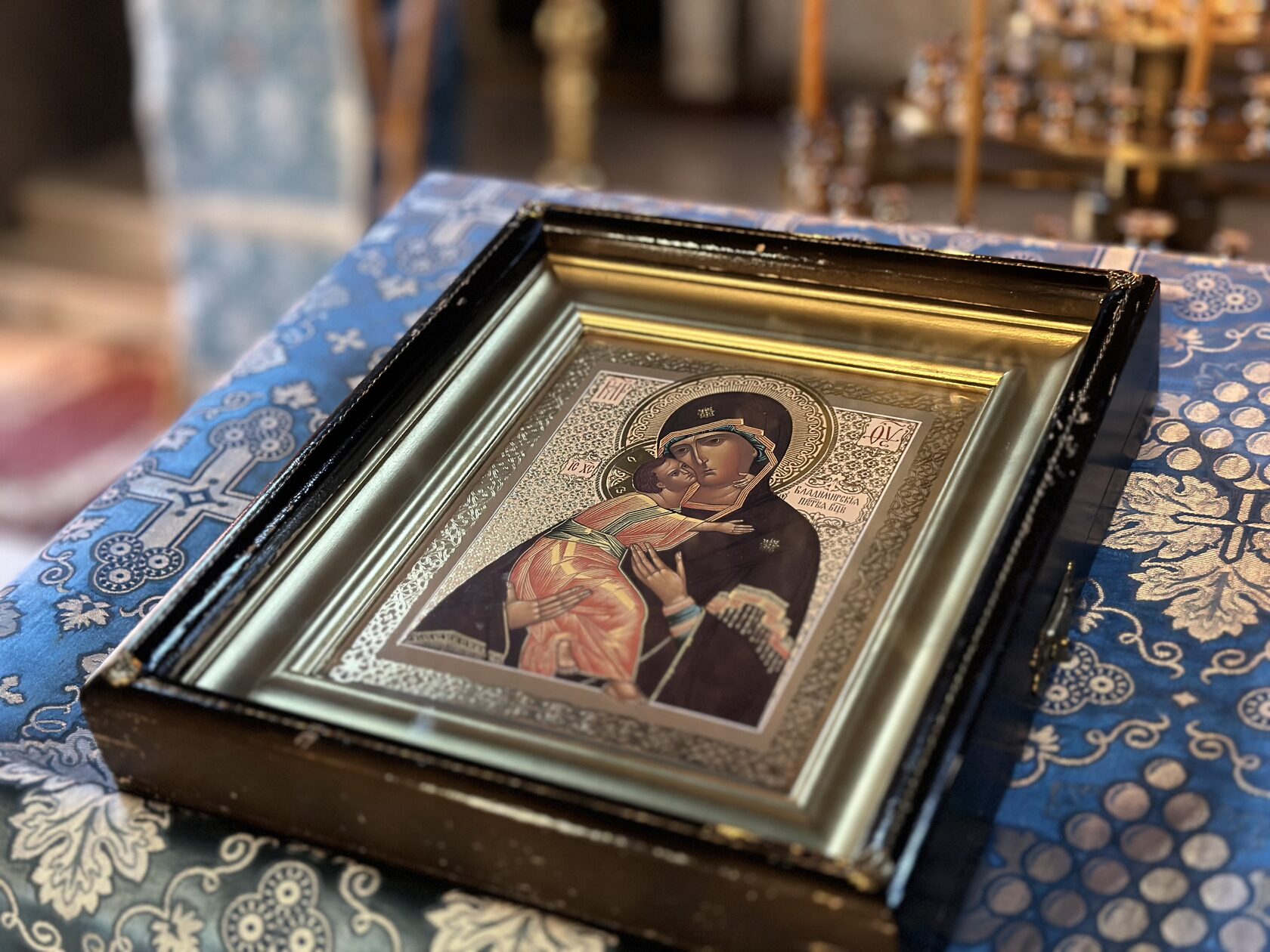 Владимирская икона Божией Матери — одна из самых почитаемых чудотворных икон в Русской Православной Церкви. Она относится к иконографическому типу Умиление (греч. Елеуса): Богомладенец Христос прижимается к щеке Богородицы, символизируя любовь между Богом и человечеством. Существует предание, что икона написана самим евангелистом Лукой, в XII веке привезена из Константинополя в Киев, а затем — во Владимир (отсюда и ее название).