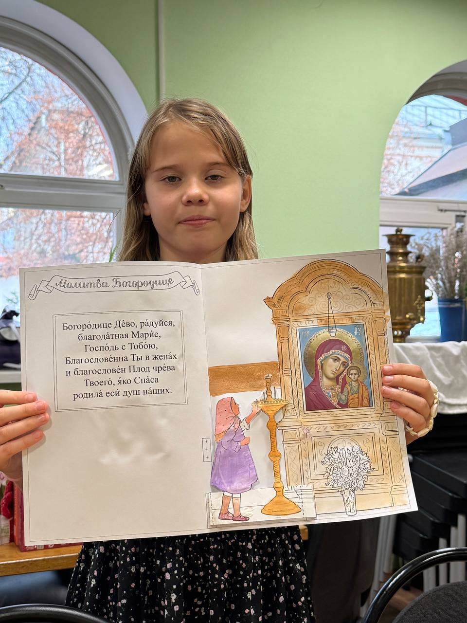 🧒👧Сегодня дети нашей воскресной школы погрузились в изучение двух важных дат, тесно переплетенных в истории России: праздника Казанской иконы Божией Матери и Дня народного единства. Мы попытались проследить связь между этими двумя событиями, понять их значение для нашей страны и православной веры. Начали мы с истории Казанской иконы. Ребята узнали о чудесном обретении образа в 1579 году в Казани, после страшного пожара, когда маленькой девочке Матроне во сне явилась Богородица и указала место, где под пепелищем скрыта икона. Этот образ сразу же прославился чудотворениями, и списки с него иконы распространились по всей Руси, став одними из самых почитаемых. Мы поговорили о том, какую роль сыграла Казанская икона в Смутное время, когда народное ополчение под предводительством князя Дмитрия Пожарского и Кузьмы Минина молилось перед этой иконой, прося помощи в освобождения Москвы от польских интервентов. Именно 4 ноября (по новому стилю) 1612 года Москва была освобождена, и этот день стал праздником в честь Казанской иконы, а впоследствии – Днем народного единства. Мы обсудили, что такое единство и почему оно так важно для страны. Пытались понять, что значит быть единым не только по национальности, но и по духу, по вере, по общим ценностям.
